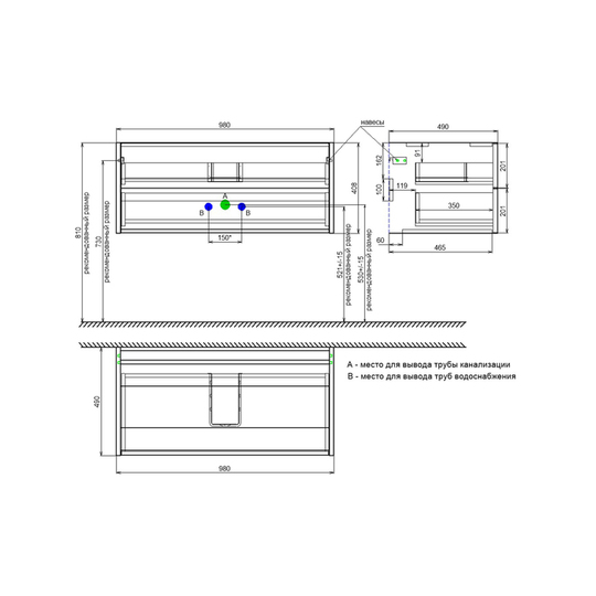 Габариты тумбы (Ш*Г*В): 980*490*408 мм.