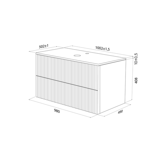 Габариты тумбы со столешницей (Ш*Г*В): 1002*502*420 мм.