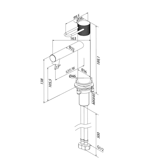 Подключение - Гибкая подводка Tucai (Испания) из антибактериального материала PEX в оплётке из нейлона, M10 - 1/2, L =500мм